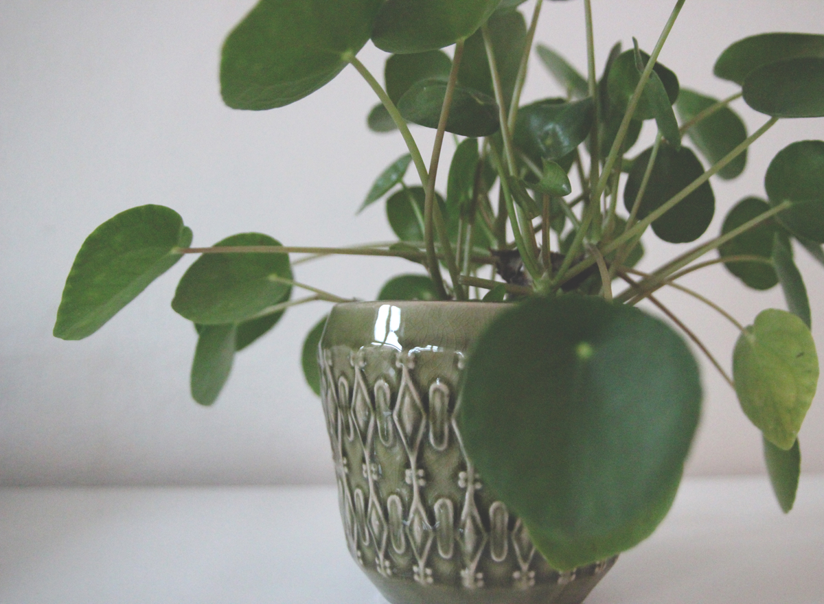 Jeg har købt en Pilea i en af blomsterbutikkerne på Værnedamsvej. Jeg havde ellers hørt, at den godt kunne være svær at finde, da den før i tiden mest blev givet videre fra person til person. Jeg har sågar set at folk sælger den på DBA. Den går også under navnet missionærplante, kinesisk pengeplante, parasolpilea og elefantøre.